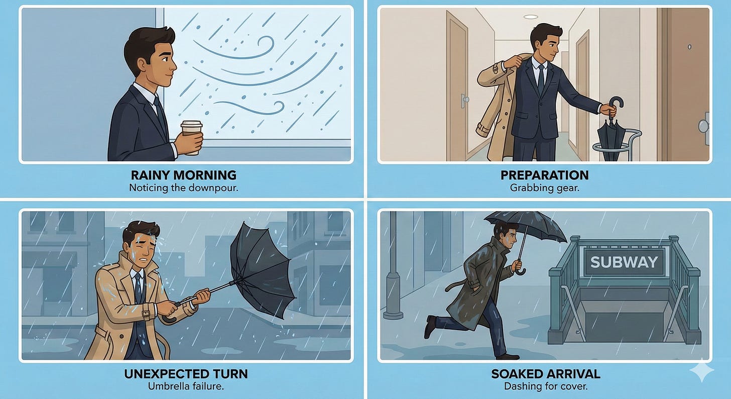 Let’s start with an everyday example: “Do umbrellas cause people to get wet?” After all, this man used an umbrella and still ended up soaked. Common sense, right?
