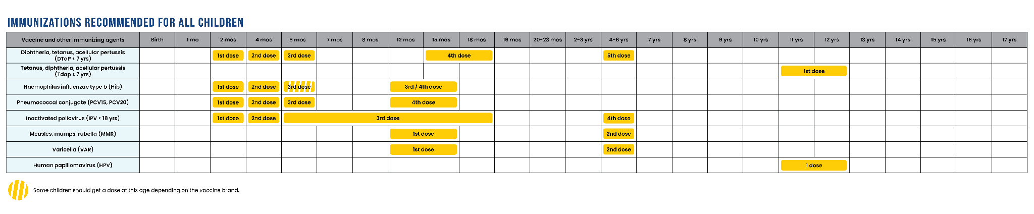 Childhood vaccines against the following infections remain on the “must-get” list: