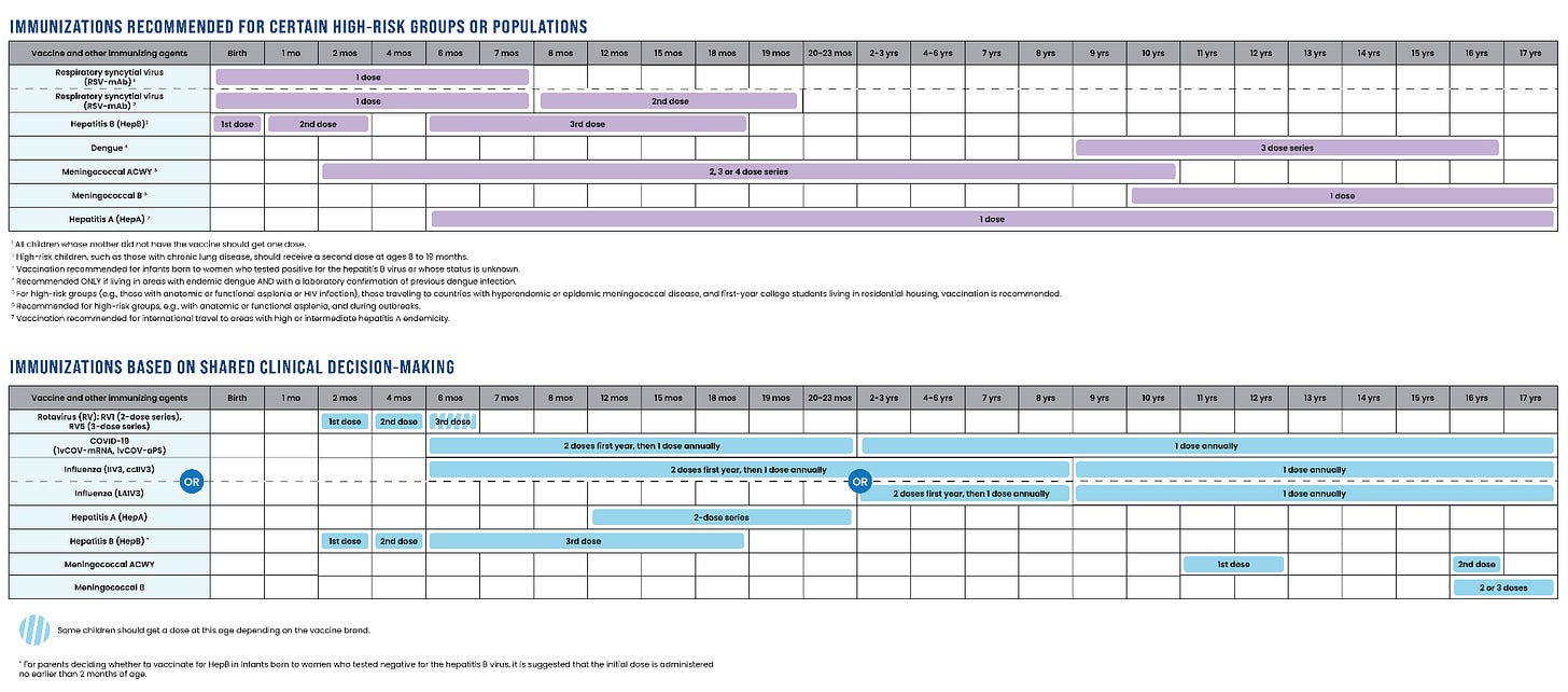 HHS is now recommending some vaccines only for high-risk infants, children, and teens, who have specific health conditions or risk factors. These include RSV, hepatitis A and B, meningococcus, and dengue.
