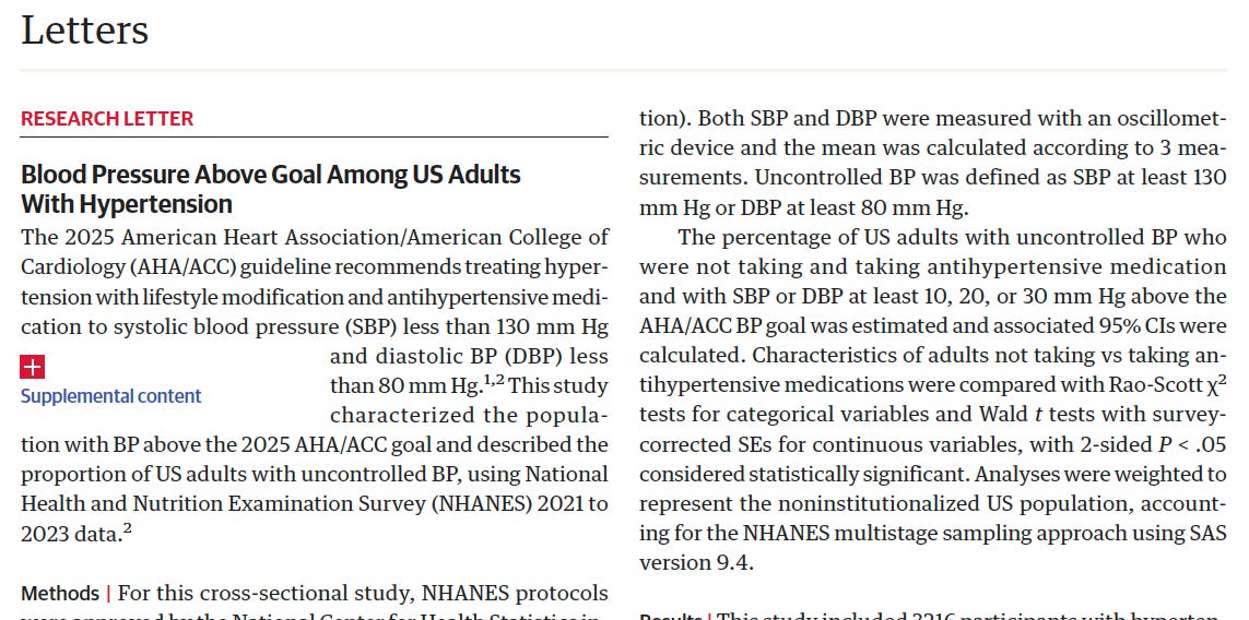 The study looks at national health survey data from 2021 to 2023, at a time when heart disease is still the leading cause of death in the United States. Using the most up-to-date target of keeping blood pressure below 130/80, the researchers show how far the country is from turning medical knowledge into everyday care.