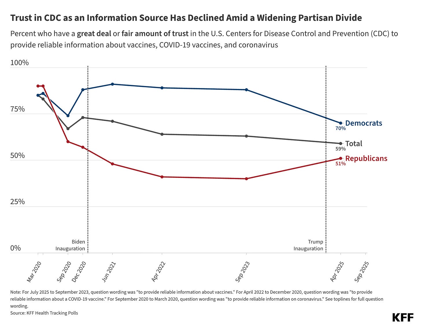 In today’s information landscape, credibility flows less through institutions and more through networks — friends, influencers, podcasters, group chats, and algorithmically boosted voices that feel familiar, relatable, and emotionally aligned. That helps explain how people can say they “believe in science” while simultaneously rejecting the institutions that produce and communicate it. It also helps explain a striking gap in the latest KFF polling: while fewer than half of Americans (47%) say they trust the CDC to provide reliable vaccine information, 86% say they trust their own doctor or health care provider for reliable health information, and 81% say they are confident the measles, mumps, and rubella vaccine is safe for children.